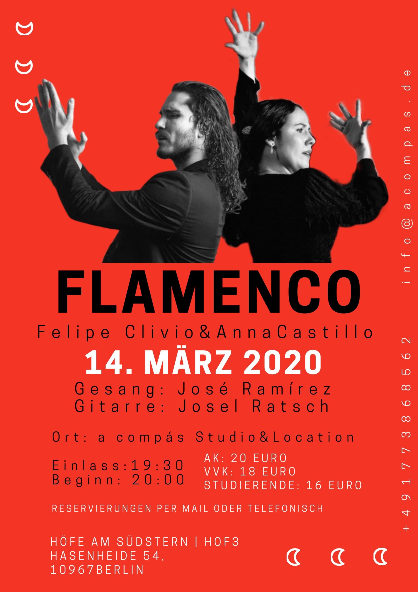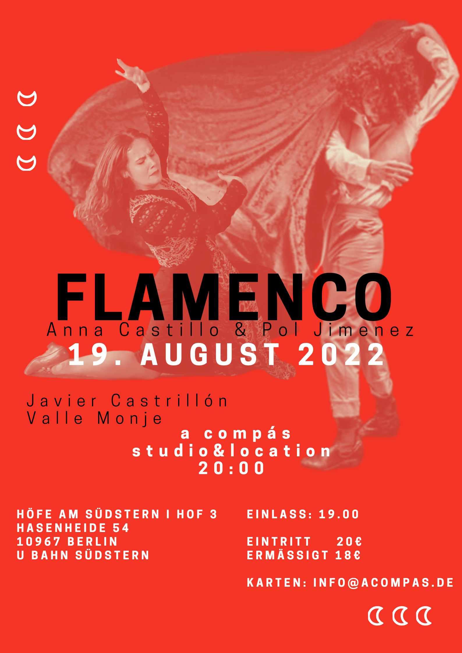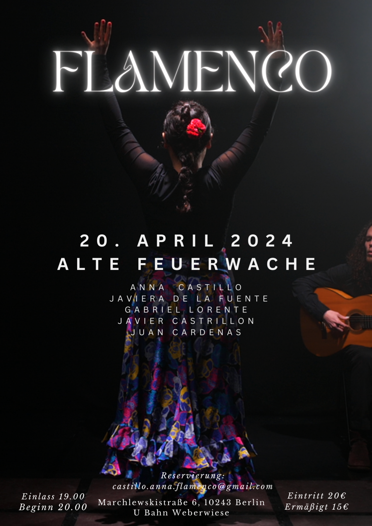 Berlin seid aufgepasst 💃🏽 Diesmal sogar mit doppeltem Besuch direkt aus Sevilla. Die alte Feuerwache (U Weberwiese) eröffnet ihre Türen für einen ganz besonderen Flamenco Abend. Einlass 19:00 / Beginn 20:00 Reservierungen:castillo.anna.flamenco@gmail.com Eintritt 20 / Ermäßigt 15 Powerful artists from Spain and Germany will come together on a special night of Flamenco. Anna Castillo (baile) […]
