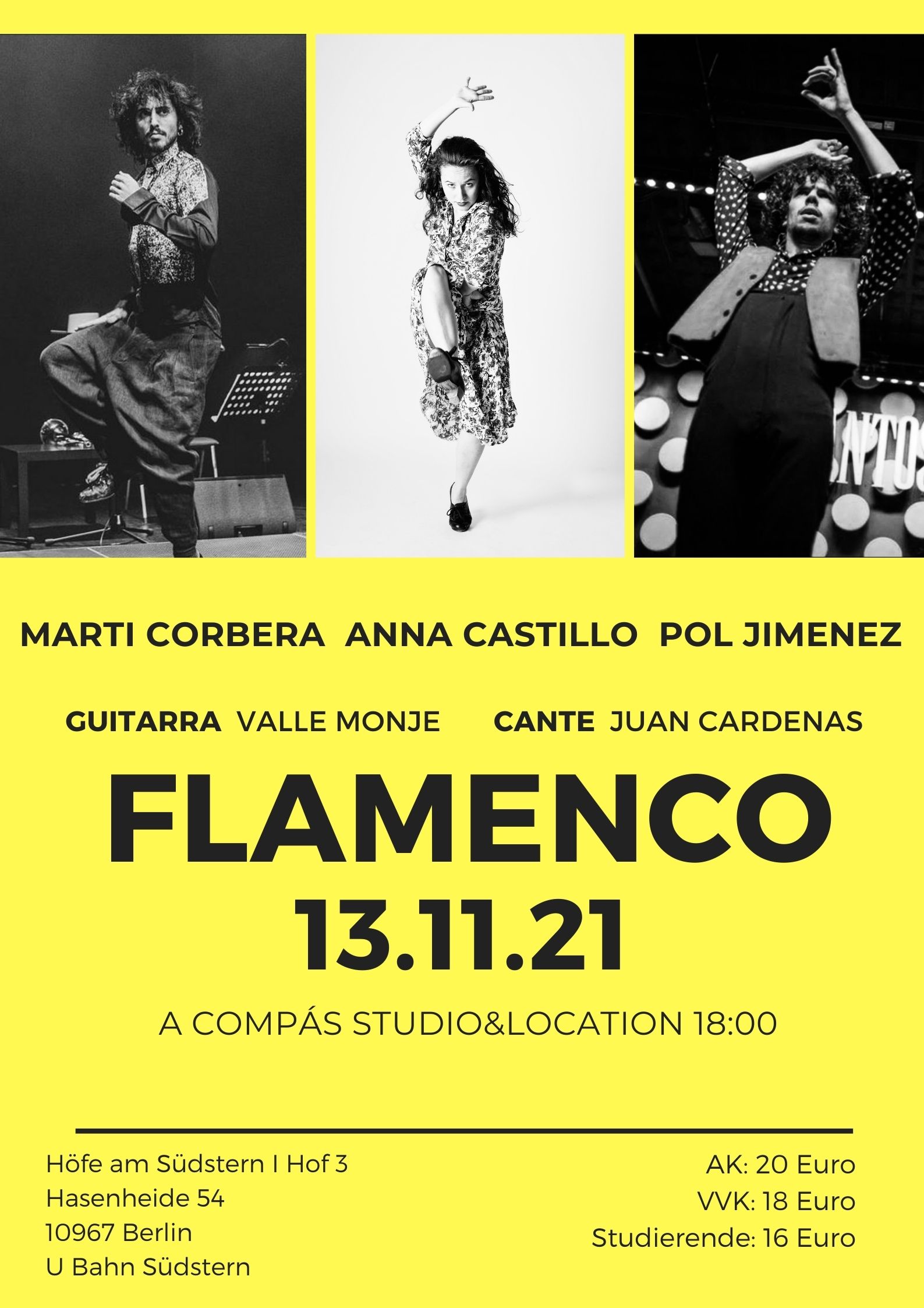 Berlin! I an excited to present the next Tablao Flamenco session on the 13.11.21. safe the date.This time with @marticorbe @poljimenez_ dancing and our musicians @juanlushh @vallemonje don’t miss out.
