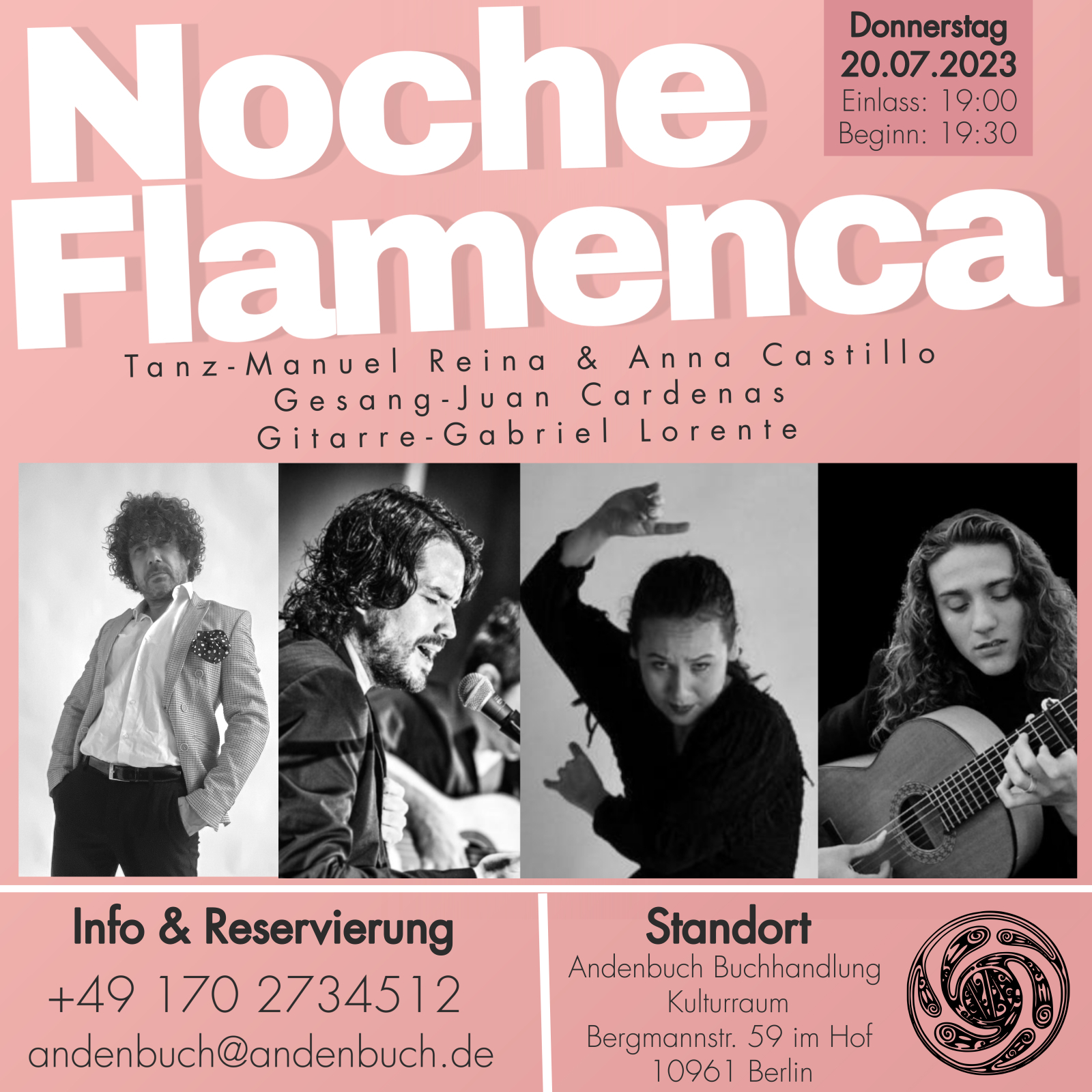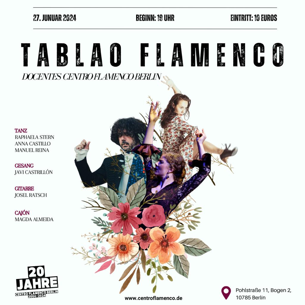 Docentes Centro Flamenco Berlin  Tanz: Raphaela Stern / Manuel Reina/ Anna Castillo Gesang:Javi Castrillon Gitarre:Josel Ratsch Cajon:Magda Almeida