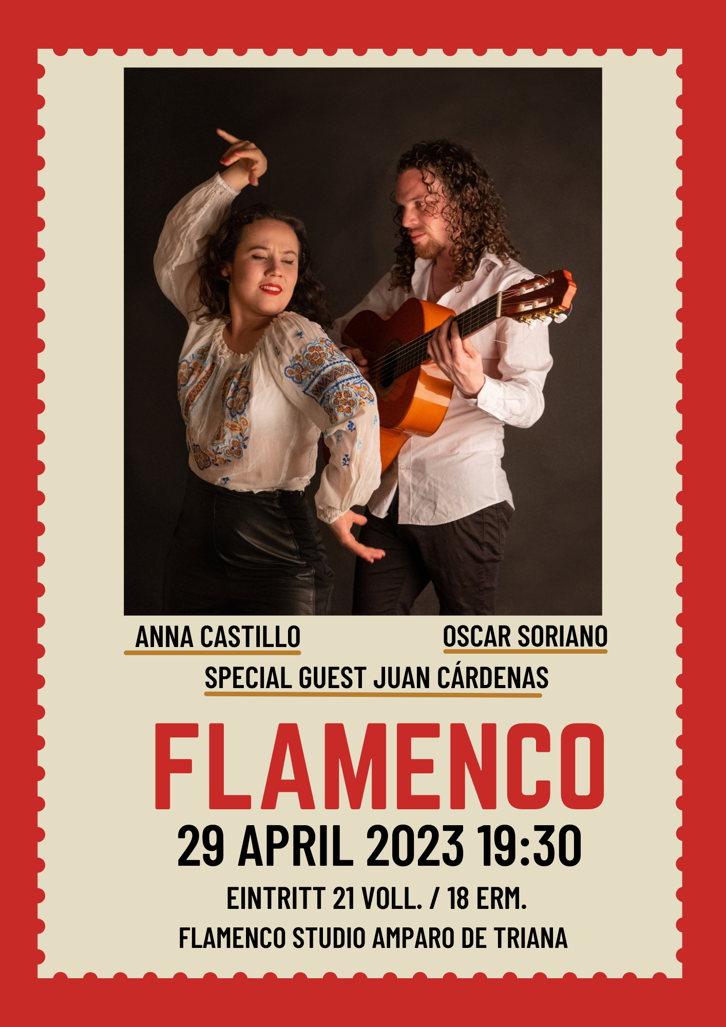 29.4.2023 19.30 Flamenco Tablao im Studio Amparo de Triana Special guest: Oscar Soriano Voc: Juan Cardenas